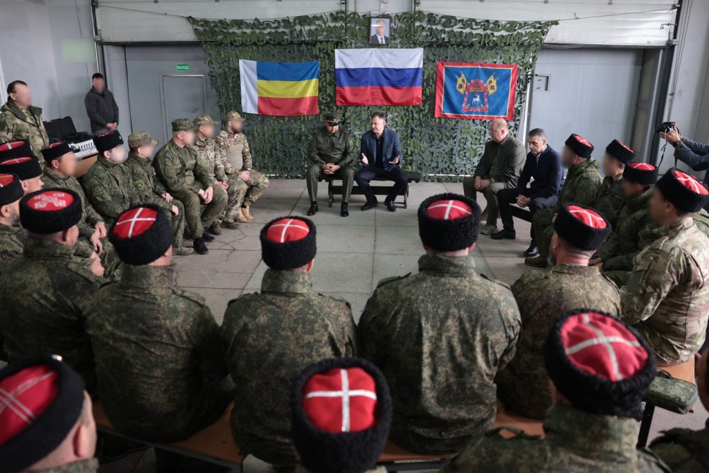 Губернатор Ростовской области Юрий Слюсарь посетил расположение мотострелкового полка Южного военного округа и отряда «БАРС», где встретился с участниками спецоперации.
