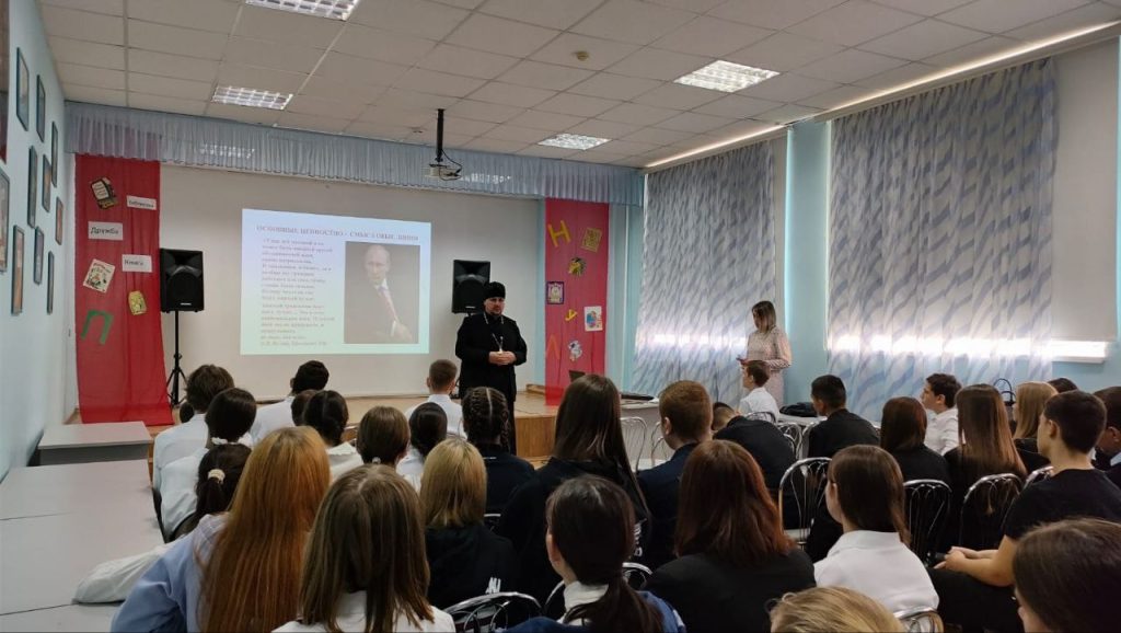 В Дубовской средней школе №1 им.Героя Советского Союза М.Ф. Потапова прошла встреча настоятеля храма Владимирской иконы Божией Матери в селе Дубовское с учащимися. Мероприятие прошло в рамках XXX Димитриевских образовательных чтений.