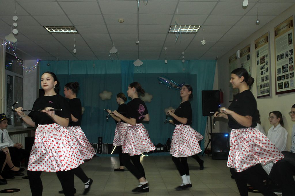 Каждый исторический блок сопровождался музыкальными подарками и танцевальными номерами от нынешних учеников школы. В финале стюардесса объявила: «Внимание! самолёт «Дубовские авиалинии», следовавший рейсом по маршруту «Школьные годы», совершил посадку в аэропорту отправления. Командир корабля и экипаж желает вам всего хорошего. Летайте самолётами Дубовских авиалиний и приводите к нам детей и внуков. Наши самолёты не падают. До новых встреч!».