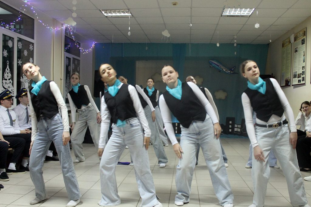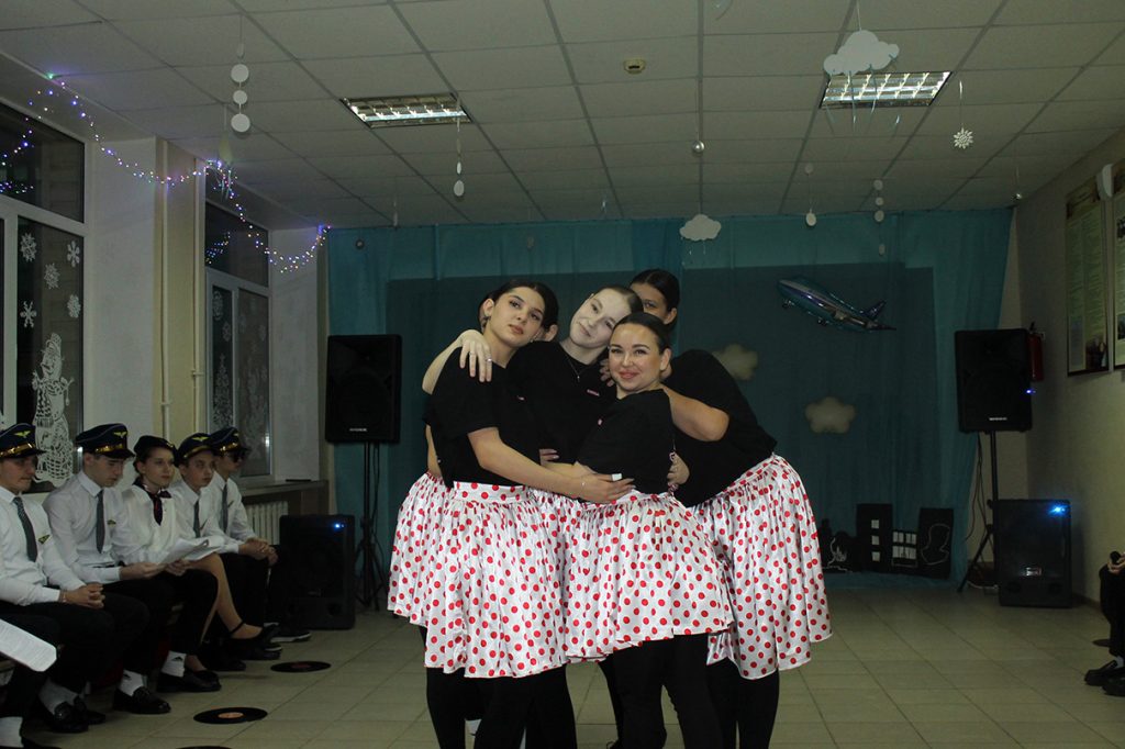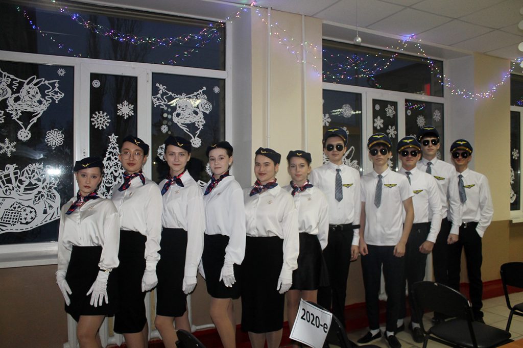 Ведущие вечера, одетые как стюардессы и стюарды, встречали гостей у «стоек регистрации» с номерами рейсов в празднично украшенном фойе. На стене были размещены «списки пассажиров» — страницы старых школьных журналов. Музыкальное сопровождение, включавшее композиции на тему полётов, такие как «Первым делом самолёты», «Пора в путь-дорогу», «Авиамарш», «Нежность» и другие, создавало особую атмосферу. Периодически звучала знакомая мелодия Аэрофлота перед объявлениями: «Уважаемые выпускники! В актовом зале продолжается регистрация билетов, оформление ручной клади и посадка на рейс авиакомпании МБОУ Дубовская СШ №1 имени Героя Советского Союза Михаила Феофановича Потапова по маршруту «Школьные годы».
