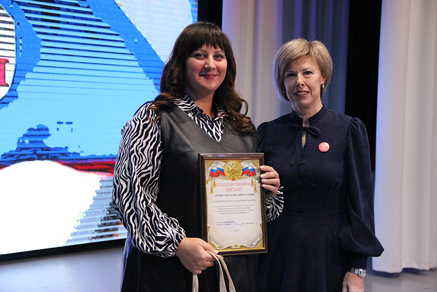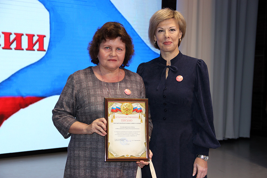 За активную гражданскую позицию, значимый вклад в общественную жизнь Дубовского района, волонтёрскую деятельность и в связи с 5-летием муниципального штаба «Мы вместе» благодарственными письмами главы администрации Дубовского района награждены руководители волонтёрских отрядов и активисты добровольческого движения района. Благодарственным письмом главы администрации отмечена Вероника Николаевна Носырева, руководитель волонтёрского отряда «СВОи Дубовского района». Благодарности также вручили участникам отряда «СВОи» и активистам: Ирине Юрьевне Плясулиной, Ларисе Ивановне Александровой, Елене Ивановне Капуста, Наталье Николаевне Андрияновой, Галине Ивановне Жилиной, Ирине Петровне Сафроновой, Елене Ивановне Саленко, Надежде Николаевне Будариной, Инне Алексеевне Селезневой, Евгении Вячеславовне Беловой, Наталье Кирилловне Дзюба, Надежде Николаевне Жук, Галине Алексеевне Жуковой, Светлане Ивановне Заяц, Валентине Васильевне Ильяшенко, Светлане Леонидовне Лященко, Елизавете Ивановне Маркиной, Татьяне Николаевне Репкиной, семье Паурчак, Нине Ивановне Кириловой и Александре Яковлевне Курманалиевой; руководителю волонтёрского отряда «ДОБРОФРОНТ» Галине Петровне Сухаревой из станицы Жуковская, руководителю волонтёрского отряда «Юный доброволец» Елене Исламовне Салаховой, руководителю волонтёрского отряда «Волонтёры серебряного возраста» Нине Михайловне Будариной. Заместитель главы администрации Дубовского района по социальным вопросам – начальник социальной сферы Ольга Геннадьевна Глуходедова вручила благодарственные письма от имени главы района за активную работу в сфере добровольческой деятельности главам администраций сельских поселений, руководителям образовательных учреждений и социальной сферы.