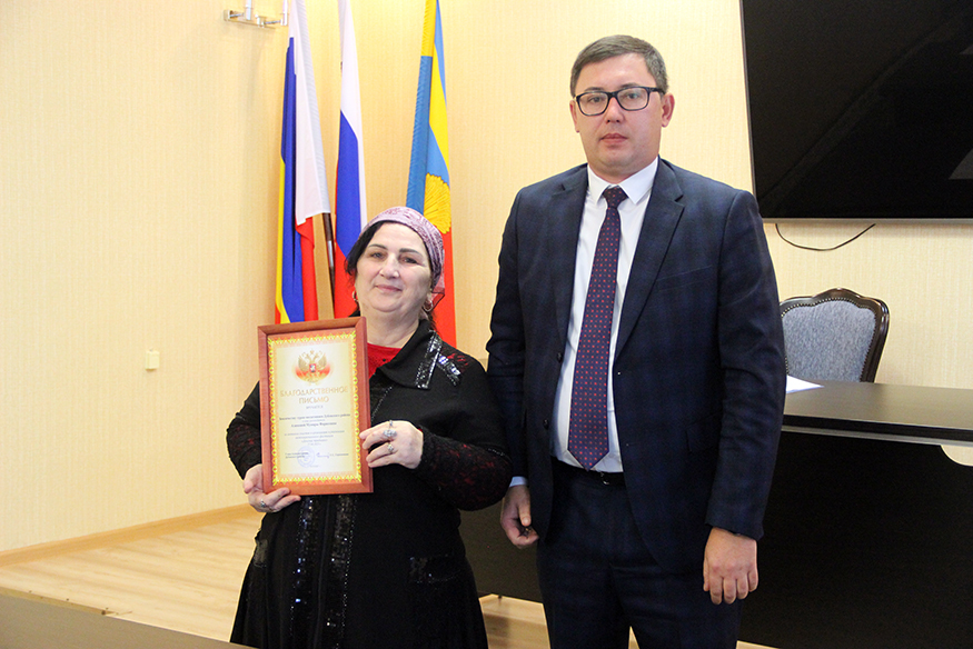 Сергей Сергеевич поблагодарил за сотрудничество лидера чеченского землячества – Абуталипа Бахаева, лидера армянского землячества – Вагаршака Ананиковича Асатряна, лидера землячества турок-месхетинцев – Муниру Фарисовну Азимову и лидера дагестанского землячества – Магомедрасула Багамаевича Муртазалиева, а также передал благодарственное письмо руководителю армянской местной общественной организации нацонально-культурной автономии г. Волгодонска и Волгодонского района «Ноев ковчег» Сасуну Балтазаровичу Саргисяну.