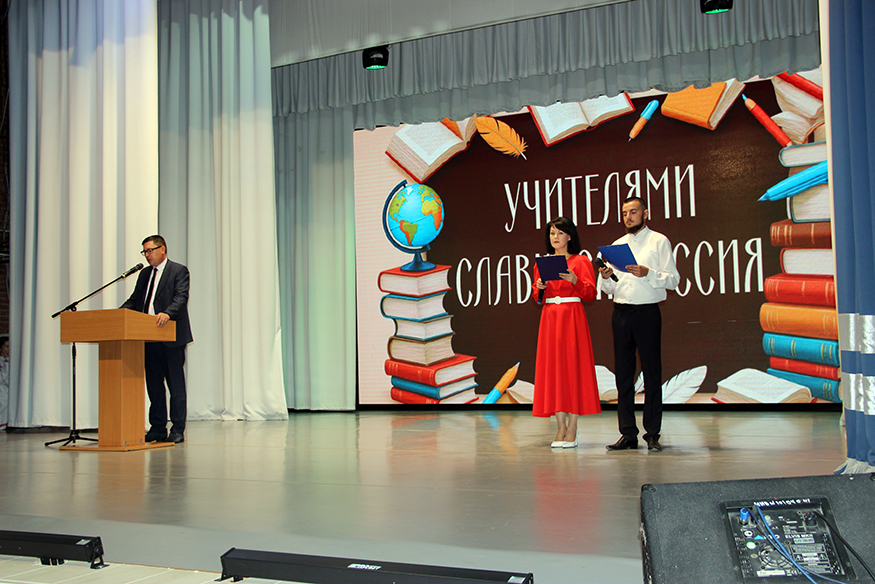 Праздник начался с лиричного вступления. Ведущие тепло поприветствовали учителей, и педагогов дополнительного образования, отметив их неоценимый вклад в будущее района и страны.