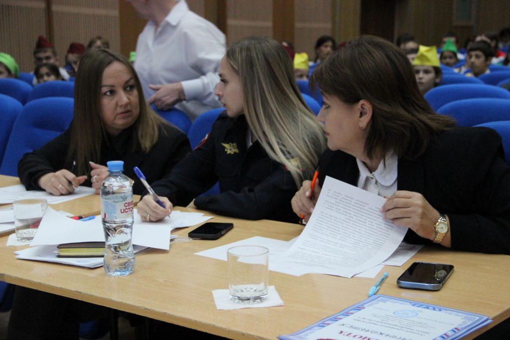 Члены жюри конкурса: слева направо О.И. Бикус-директор МБУ ДО «ЦДТ»; Е.Г. Свинцова — старший инспектор по пропаганде БДД отдела Госавтоинспекции МУ МВД России «Волгодонское»; Е.В. Брицына — заведующий Дубовским РОО.