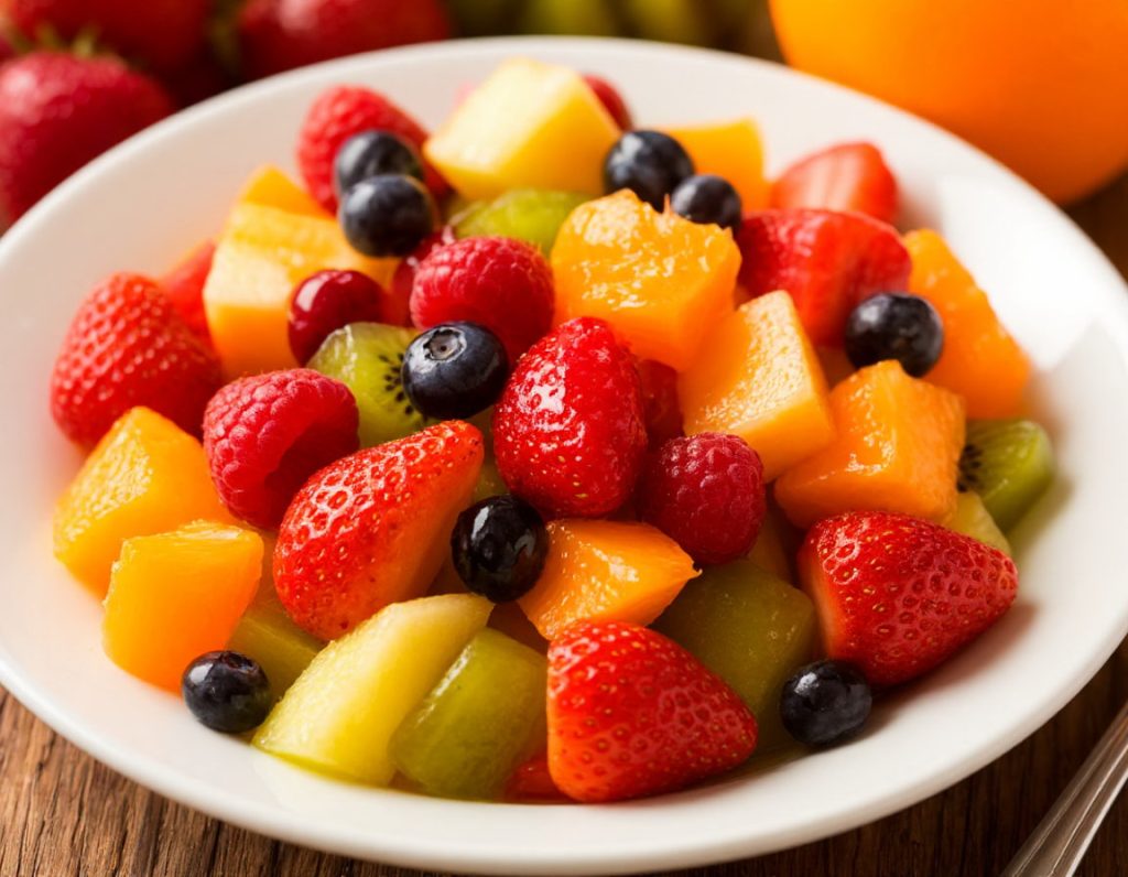 На заметку: не следует смешивать салаты из свежих фруктов и ягод с кашами и мясными блюдами. Они могут вызвать брожение, спровоцировать вздутие живота, изжогу и дискомфорт в организме.