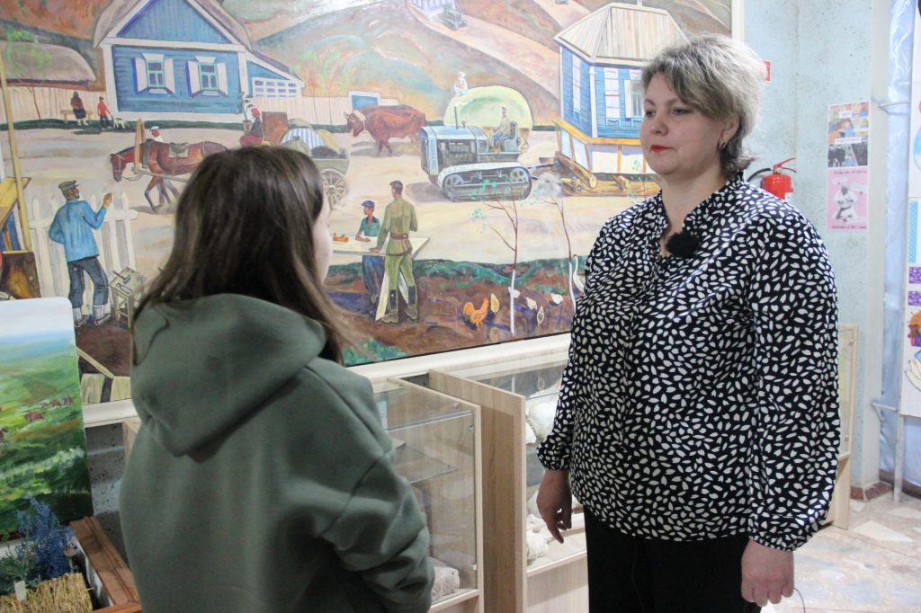Затем Злата отправилась в Жуковский краеведческий музей, где ознакомилась с историей переселения станицы Жуковской. Директор музея — Наталья Владимировна Казьмина рассказала Злате о том, как жуковчане пережили переселение.