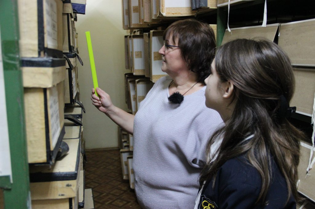 За время съемок репортажа Злата побывала в муниципальном архиве администрации Дубовского района и вместе с его руководителем — Светланой Александровной Павловой изучила исторические документы о переселении станиц и хуторов Дубовского района в связи со строительством Цимлянского водохранилища.